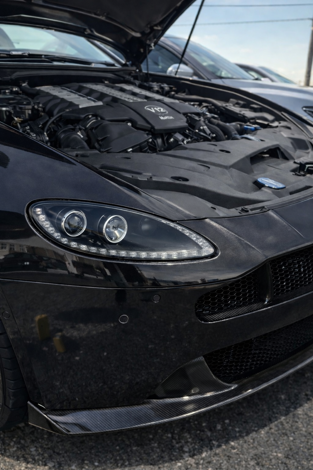 本日はアストンマーティン ヴァンテージ V12がプロテクションフィルムの見積&車両状態の確認でご入庫でした!なんとも痺れるエンジン音…今回はフロントフルのご依頼でした。一部飛び石がすでにある状